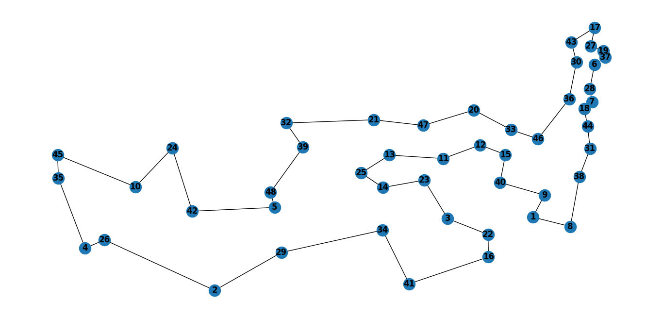 We do not use AI, just code and creativity. Our algorithm fits perfectly in problems that require a travel around connected points and return to the origin in just one visit per point